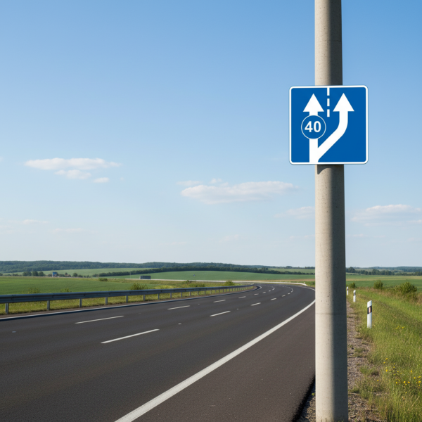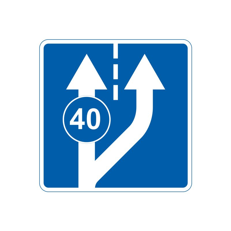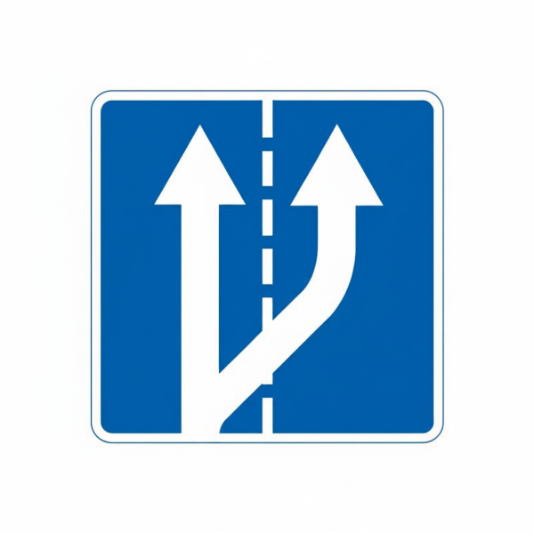 Цей дорожній знак позначає початок додаткової смуги для руху транспортних засобів на дорозі. Це важливий елемент безпеки на дорозі, який допомагає впоратися з трафіком та зменшити затори на дорозі.