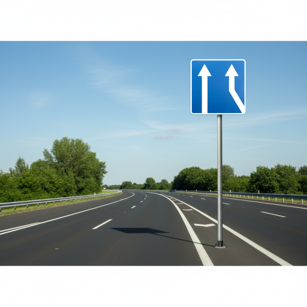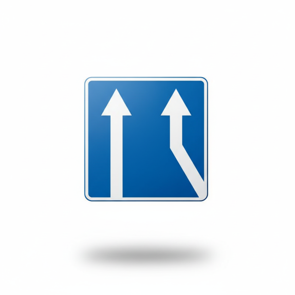 Цей знак вказує на можливість прилягання додаткової смуги руху з правого боку. Він допомагає автомобілістам правильно розподілити транспортний потік та уникнути конфліктів на дорозі.