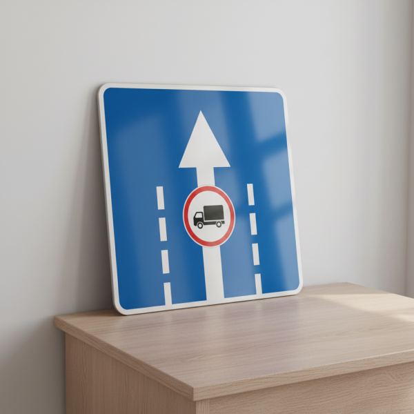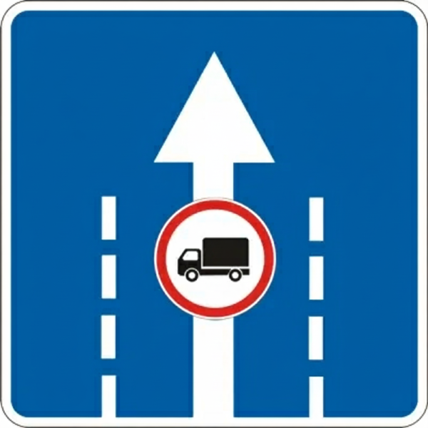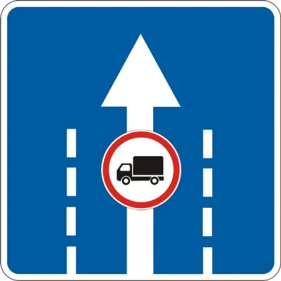 Цей дорожній знак інформує про використання конкретної смуги руху для певних видів транспорту. Забезпечує безпеку та організацію руху на дорозі.
