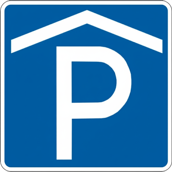 Дорожній знак Знак 5.42.2 "Місце для стоянки" застосовується для критих стоянок.