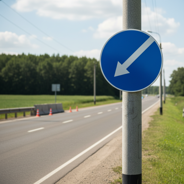 Характеристики товару "Дорожній знак 4.8 “Об’їзд перешкоди з лівого боку” – метал або композит, ДСТУ 4100"