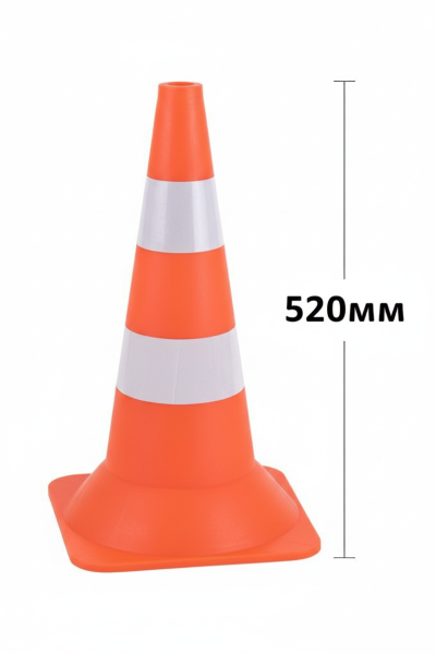 Конус дорожный пластиковый Н-52 см с 2 светоотражающими полосками – для безопасности на дорогах и парковках.