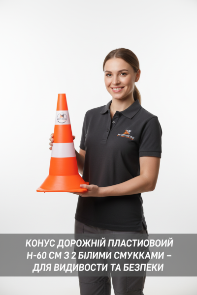 Конус дорожный пластиковый Н-60 см с двумя белыми полосками – это надежный и эффективный элемент дорожной безопасности, разработанный для повышения видимости и организации движения на дорогах. Этот конус изготовлен из высококачественного пластика в Украине, оснащен двумя светоотражающими белыми полосками для обеспечения максимальной видимости даже в условиях ограниченного освещения.