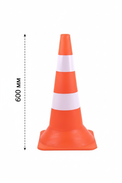 Использование товара Конус дорожный пластиковый Н-60 см с 2 белыми полосками – для видимости и безопасности