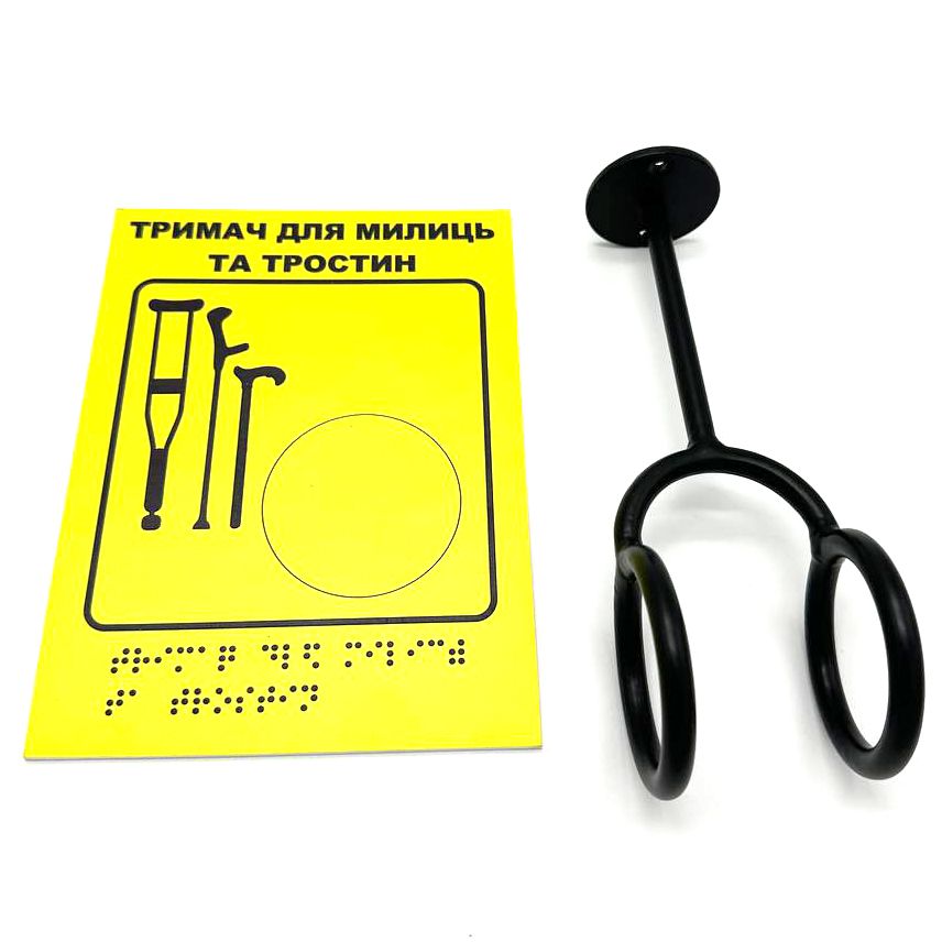 Комплект "Держатель для костылей + Тактильная табличка для слабовидящих и незрячих" – для доступности и удобства