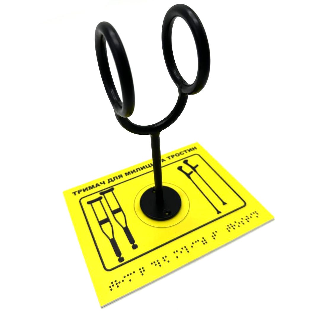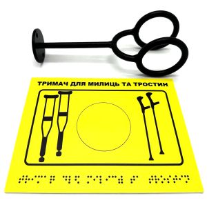 Комплект «Держатель для костылей черный + Тактильная табличка для слабовидящих и незрячих» – это готовое решение для обеспечения доступности помещений в соответствии с требованиями ДБН В.2.2-40:2018 «Инклюзивность зданий и сооружений» .