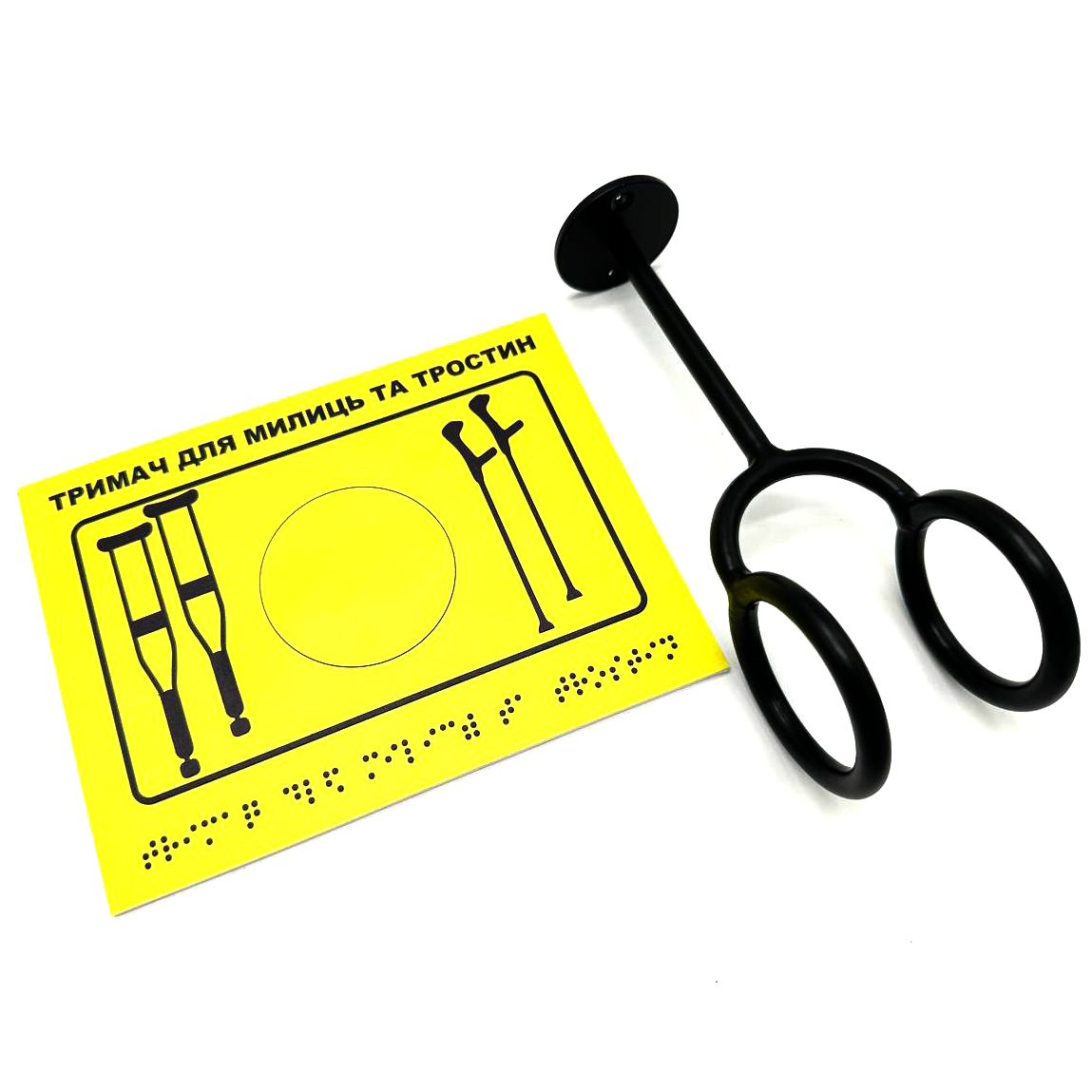 Комплект "Держатель для костылей черный + Тактильная табличка для слабовидящих и незрячих"