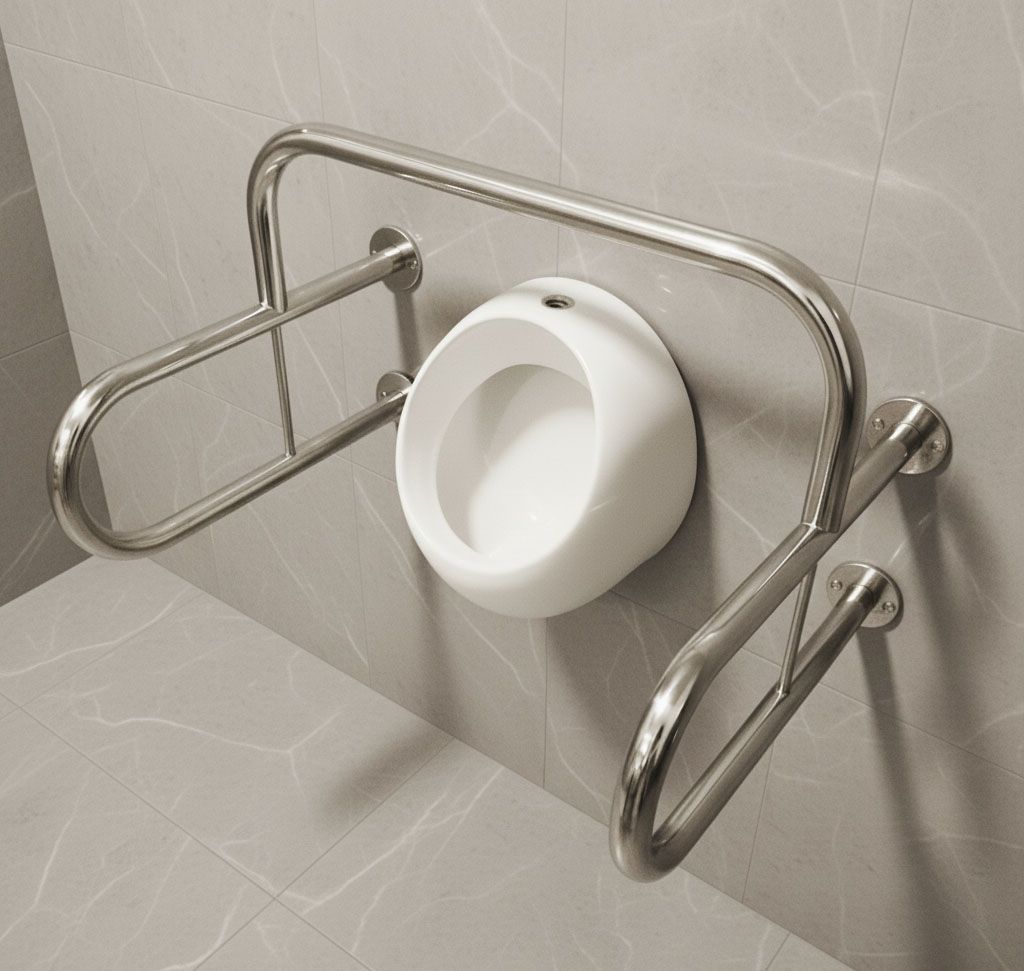 Усиленный поручень для писсуара предназначен для людей с ограниченными возможностями и маломобильными группами. Он устанавливается рядом с писсуаром как надежная стационарная опора , обеспечивающая комфорт и безопасность при использовании.