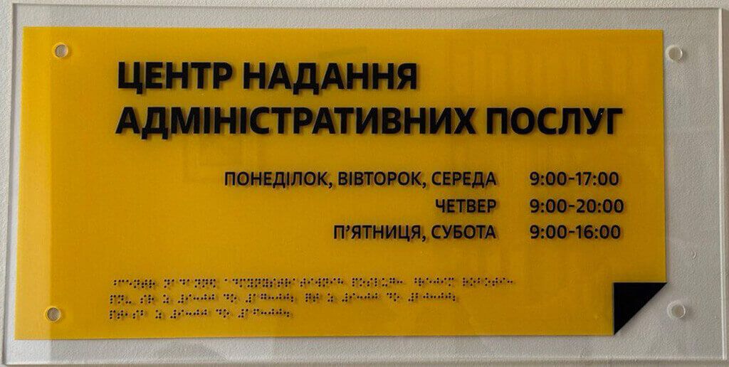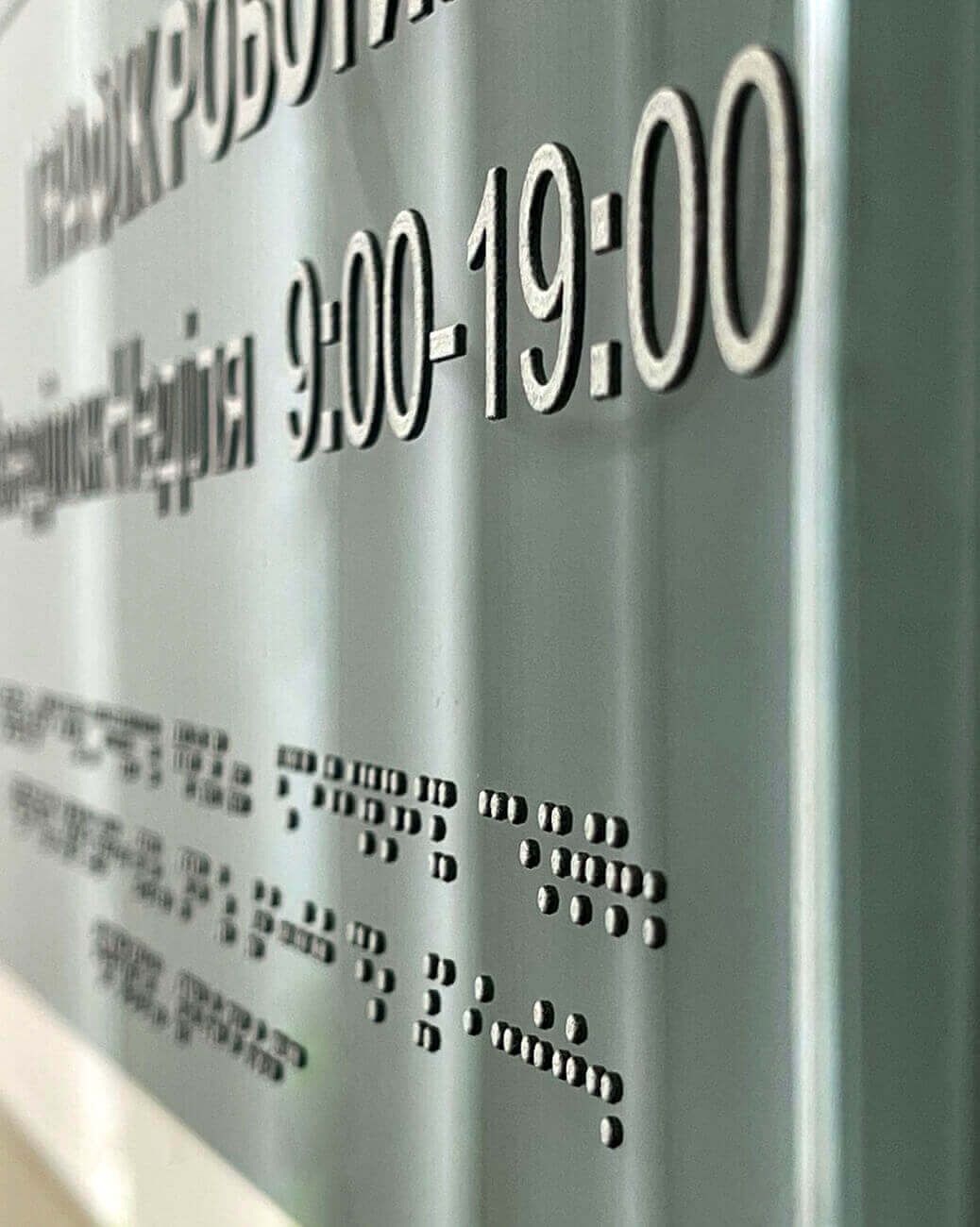 Фасадні таблички на органічному склі зі шрифтом Брайля