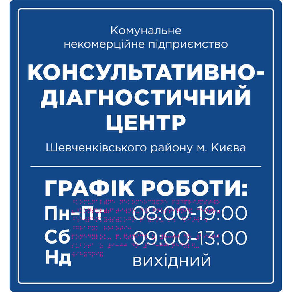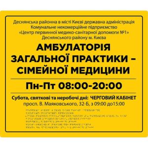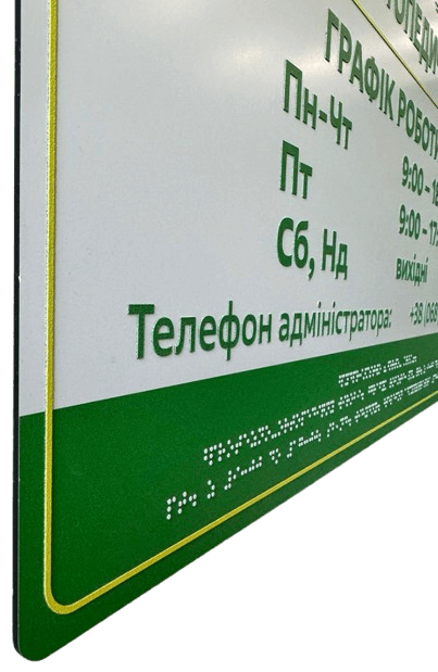 Фасадні вивіски для медичної сфери зі шрифтом Брайля