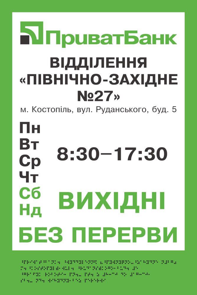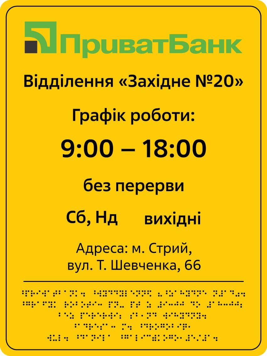 Фасадні вивіски шрифтом Брайля для банкових установ