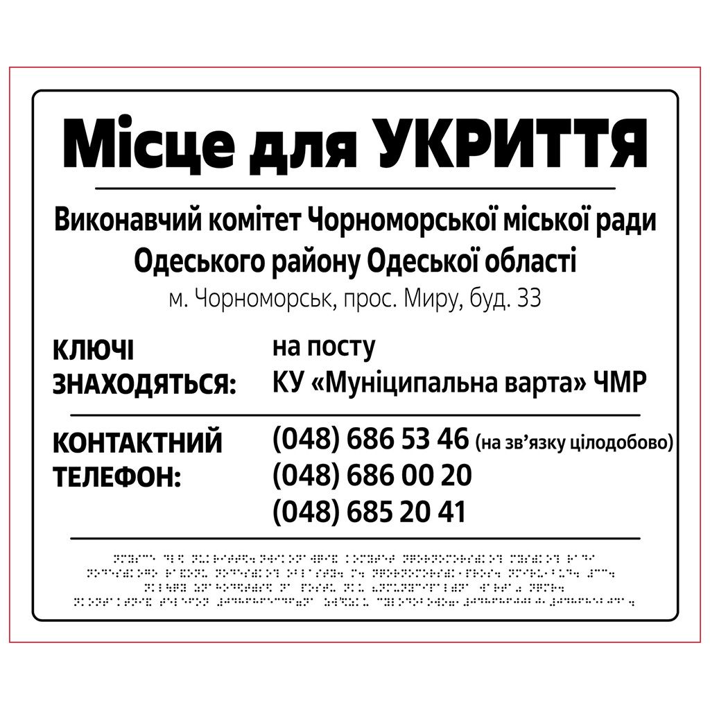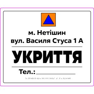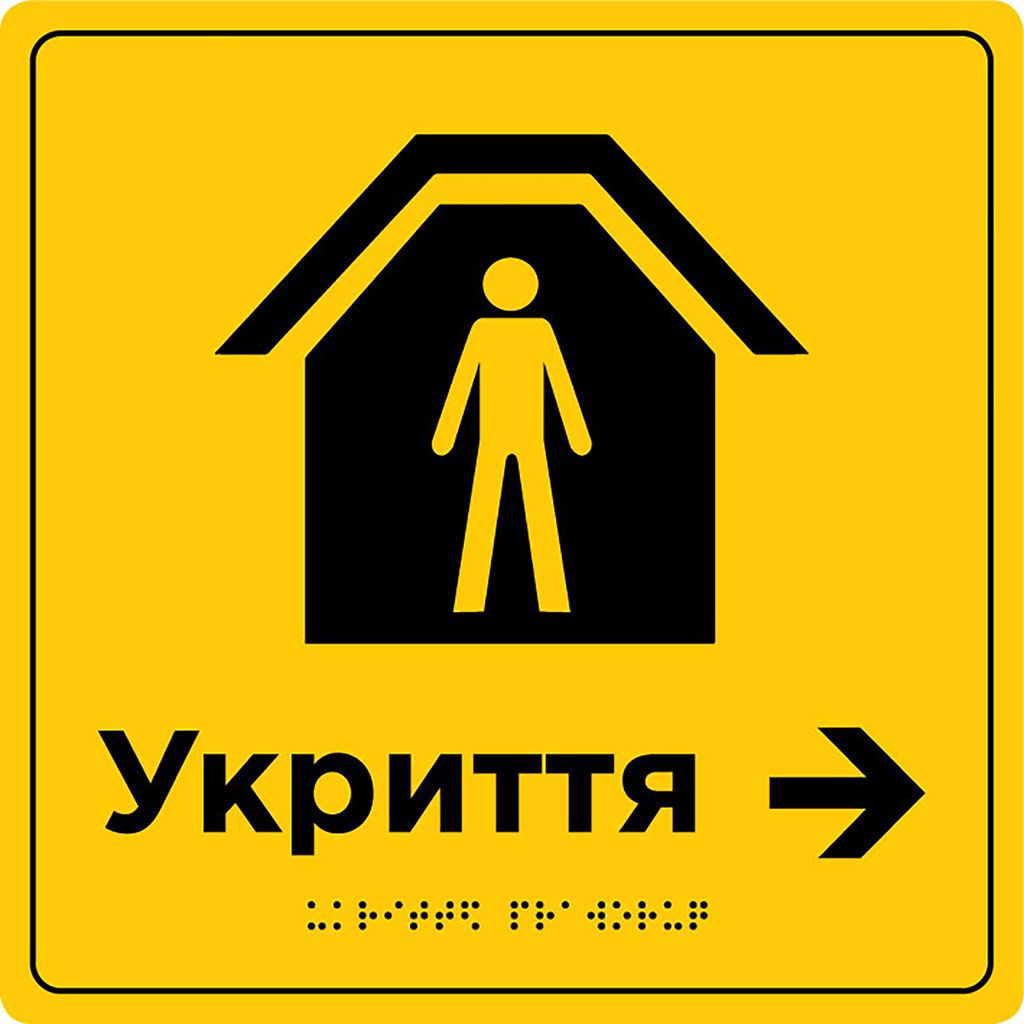 Табличка “Укриття” зі шрифтом Брайля