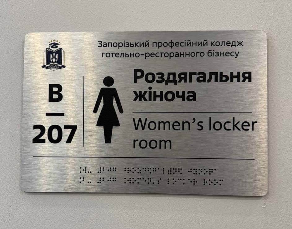 Таблички для внутрішніх позначень зі шрифтом Брайля на алюмінієвій пластині