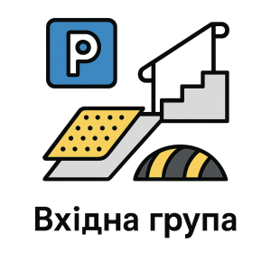Товари для облаштування безпечного та доступного входу: пандуси, поручні, тактильна плитка, знаки, делінеатори. Рішення згідно з ДБН для громадських і приватних об’єктів.